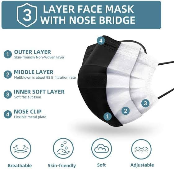 Surgical mask Black colour with Nosepin